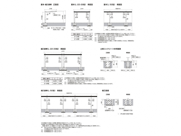 | 屋根高タイプ | 標準柱仕様(有効高 約1,900mm) / ロング柱仕様(有効高 約2,500mm) / ロング柱28仕様(有効高 約2,800mm) |