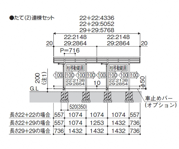 規格奥行 | 4336mm / 5052mm / 5768mm |