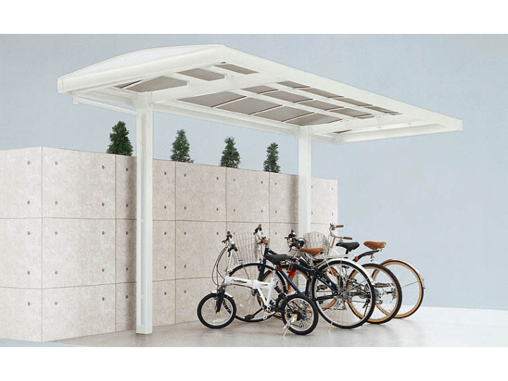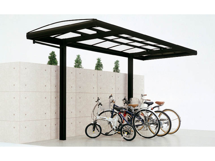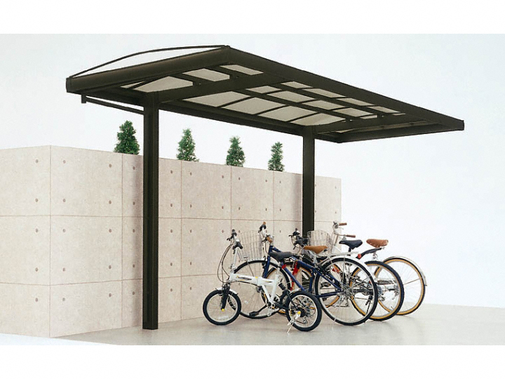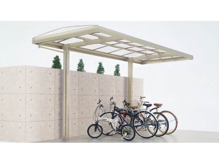 集合住宅など収容台数がある程度必要な場合には縦連棟タイプがオススメ。特徴的なフォルムの屋根が一直線に設置されることで建物の印象がガラリと変わります。自転車1台当たり60cm幅を目安に大きさを選択してください。