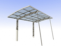 プレシオスポート ミニはアール屋根・片流れタイプのエクスショップオリジナルブランドのスタンダードサイクルポートです。基準風速Vo=34m/sの耐風性能と20cm相当(600N/㎡)の耐積雪性能を兼ね備えています。自転車は約3〜4台駐輪可能です。
