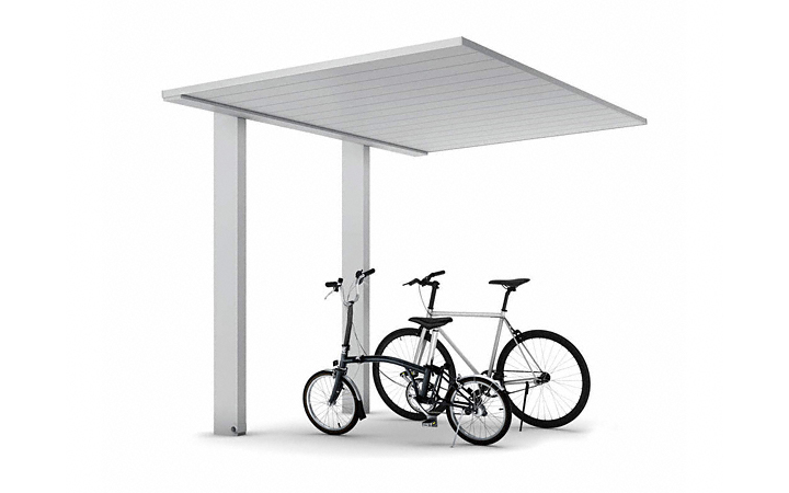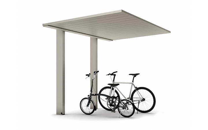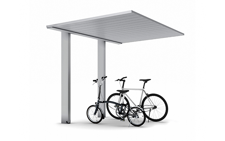 プレーンルーフ ミニ 600タイプ 単体セットはコンセプトを”人に寄り添う”とした水平垂直シルエットが魅力のサイクルポート(駐輪場)です。屋根勾配は3°・厚みは40mmのフラット仕様。また、基準風速Vo=40m/s・耐積雪性能20cm相当が備わっています。自転車収容台数(目安)は3〜8台です。
