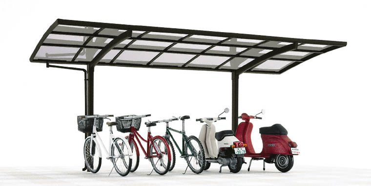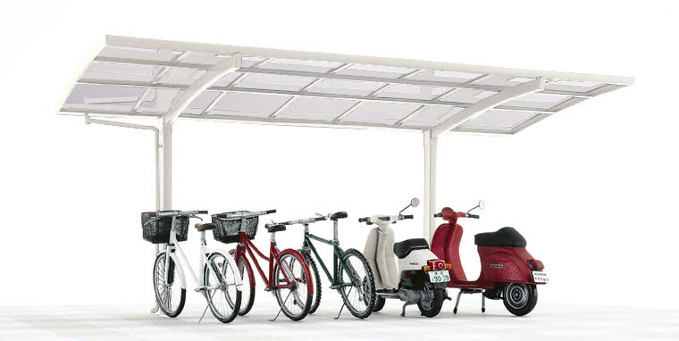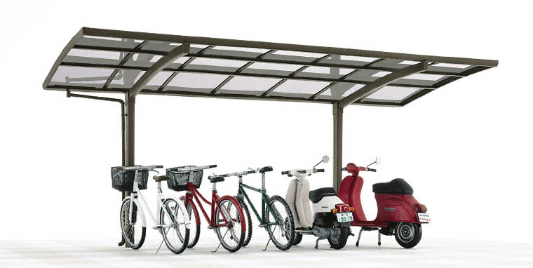 奥行きを延長し、4〜7メートルに対応したサイクルポートです。2100mm幅幅の切り詰め加工が必要な敷地などにカーポート代わりや、軽自動車やコンパクトカーの屋根に活用できる大きさです。