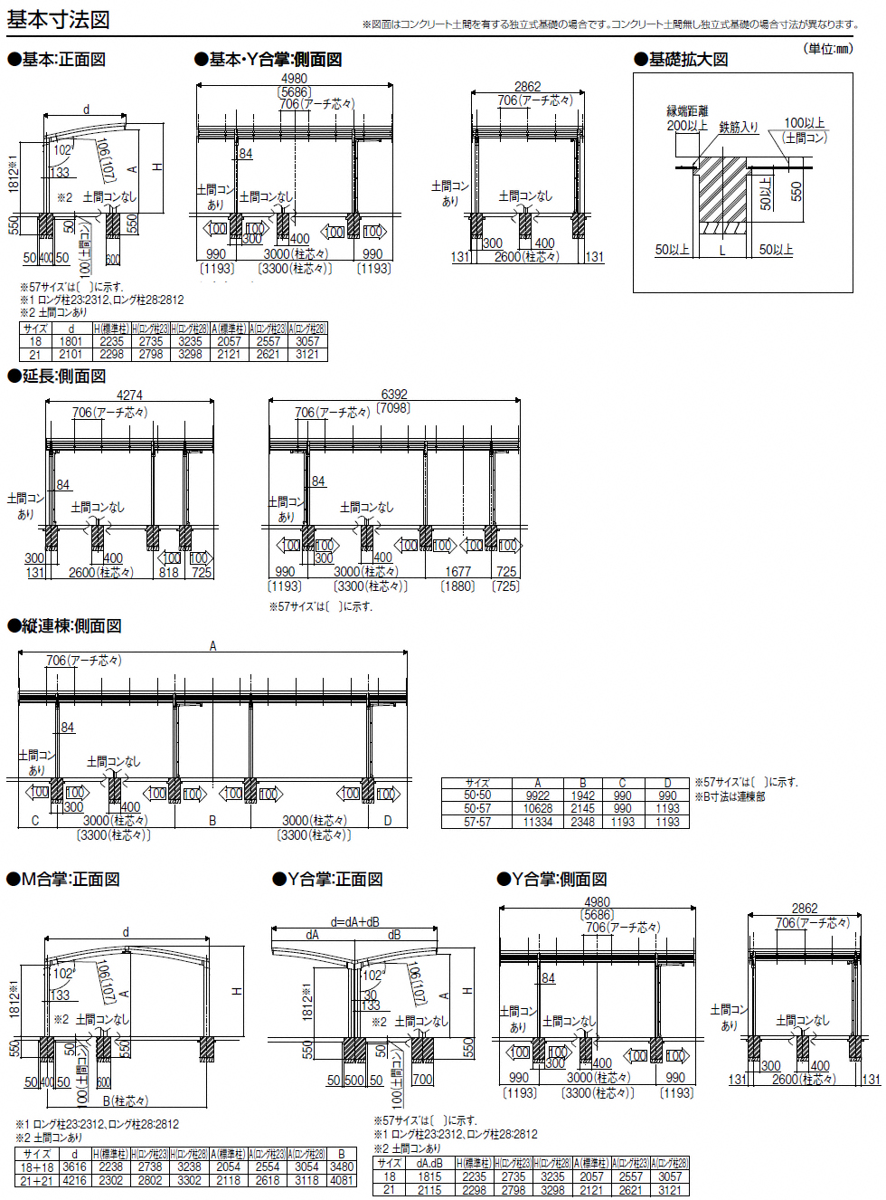 | 屋根高タイプ | 標準柱仕様 / ロング柱23仕様 / ロング柱28仕様 |