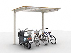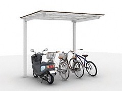 奥行きに小さいサイクルポートを延長したタイプです。敷地にあわせた設置方法で軽自動車用などの屋根から通路の屋根、洗濯物干し場としても活用ができます。屋根があることで真冬はサドルには霜が降りなくなります。