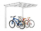 ネスカFミニ (フラットスタイル) M合掌は2台のネスカFミニの屋根先をくっつけたM字型のサイクルポート・駐輪場です。20cm相当の積雪に対応し、基準風速Vo=36m/sの耐風性能もあります。屋根材は7種類・カラーは4種類と豊富なラインナップ。
