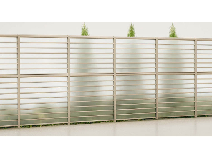 サニーブリーズフェンスS型は目隠し率100%の採光タイプのルーバーフェンスです。フェンスからの距離にあわせて視線をやさしくカットするので外部からの侵入抑制に効果的です。ブレイドには光と適度に通すASA樹脂を採用しています。