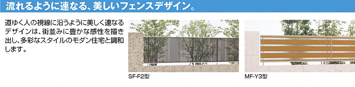 ライフモダンシリーズのフェンスがリニューアル!フェンスの意匠を一層引き立てるスリム&フラットな上下桟と、個性的なパネルデザインが、モダン住宅に調和します。ライフモダンII門扉とのコーディネートも可能。板張りタイプのYS型・TS型は適度なスリットで、見た目の美しさとともに、目隠し効果でプライバシーにも配慮しました。