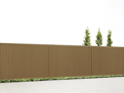 ハイスクリーンフェンスC型は目隠し率100%と外部からの視線遮断に最適な横目隠しタイプのスクリーンフェンスです。耐風圧強度が風速33.1m/s相当と高い強度を持っています。高さと本体カラーはそれぞれ3種類から選択いただけます。