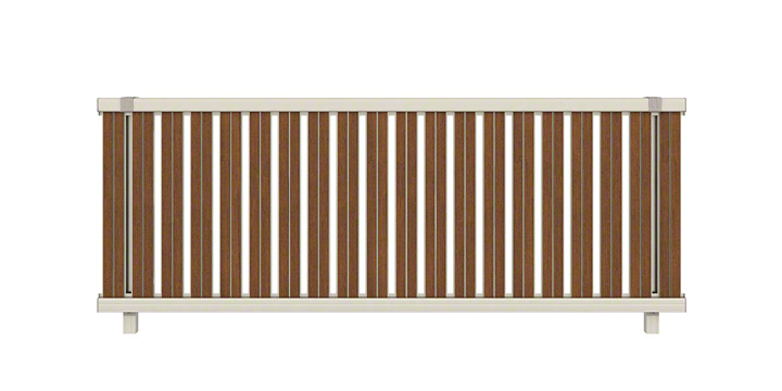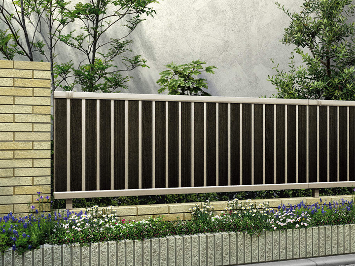 ルシアスフェンスF01型 たて目隠し 複合色は目隠し率100%の縦模様の完全目隠しフェンスです。道路側から見えない風の通る2mmのすき間があります(通風率2%)。色は7パターンの複合色から選択いただけます。
