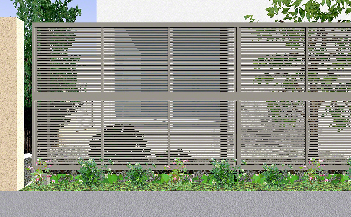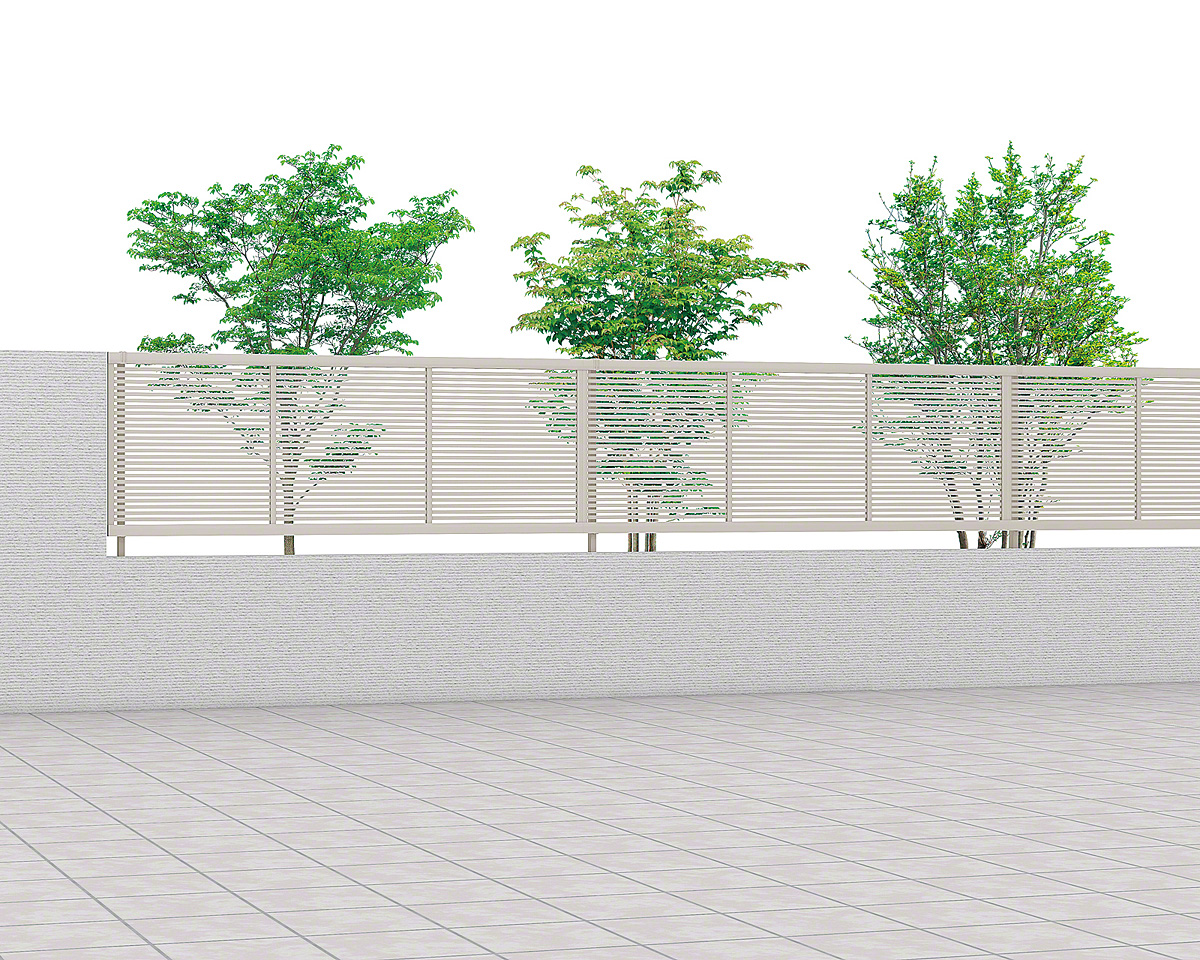 ライシスフェンス1型は細い横桟のフェンスデザイン、正面から見たときの透過率は約34%です。長尺の柱を使用し2段施工で高さも思いのまま。上下で違うデザインの組み合わせも可能です。※シャレオ/エクジスシリーズがライシスシリーズとして生まれ変わりました。コーディネイト商品のエクステリア(門扉や機能門柱など)を使うことで、まとまりのあるきれいな住宅の仕上がりになるかと思います。