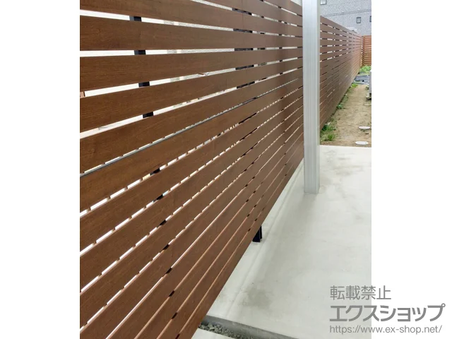 ルシアスフェンスH02型 横板格子 木調色 2段支柱 自立建て用