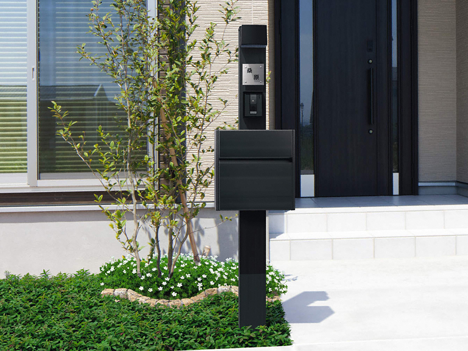 シンプルで目立ちすぎないながらも、機能に満ちたエントランスポール「エスポ」。様々な住宅と調和する無駄のないスリムデザインです。
