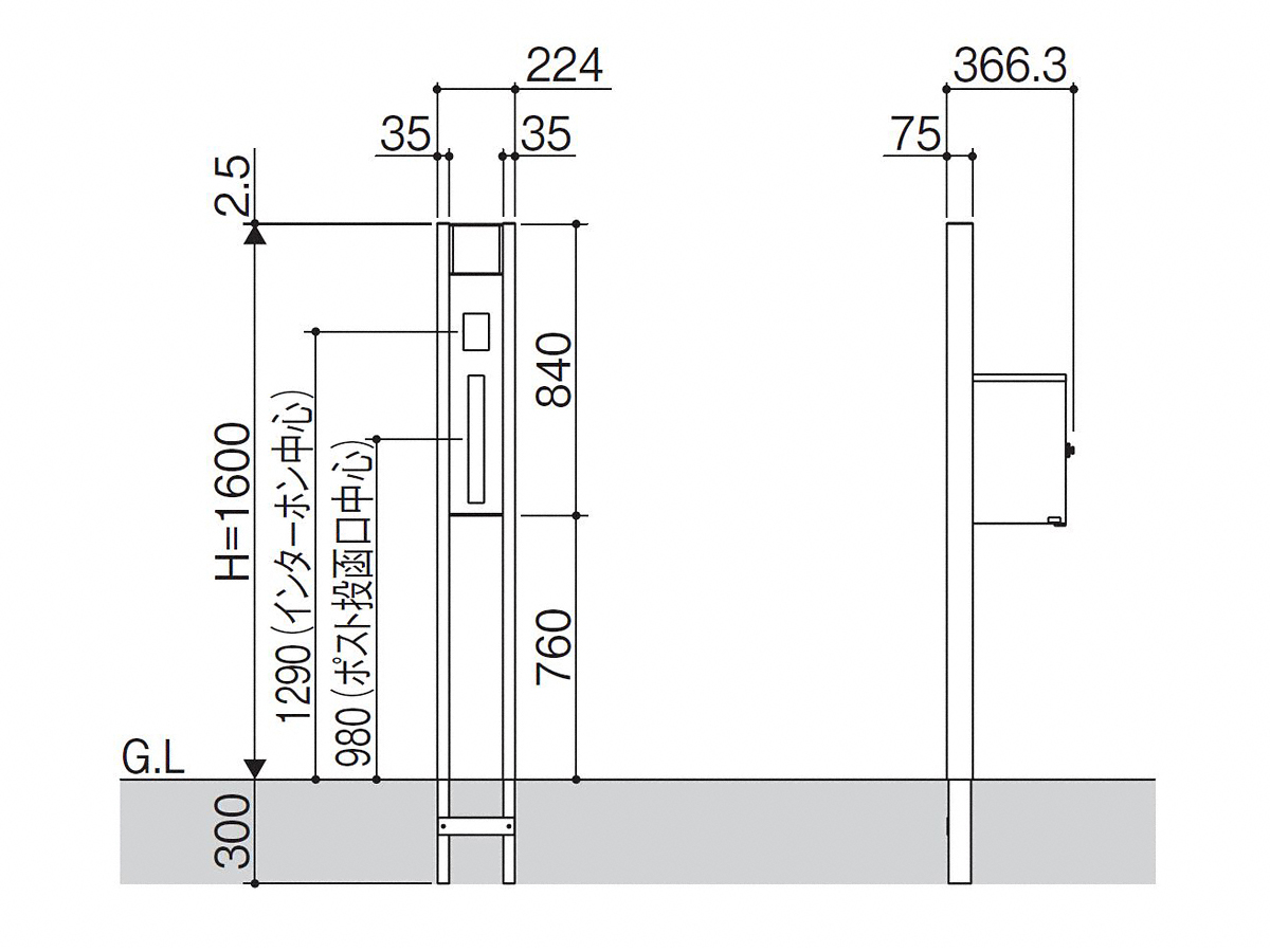 表札やポストなどの機能をひとまとめにしたスマートな機能門柱です。スペースをとることなく十分な働きをしてくれるのも大きな特徴です。