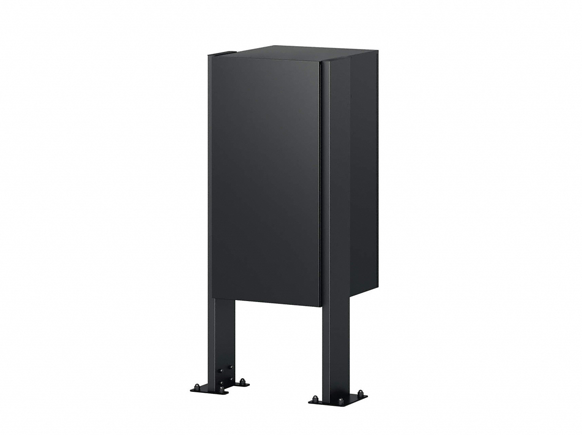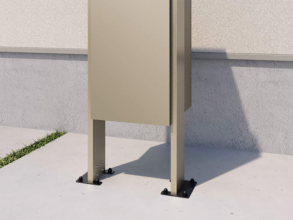 宅配ポスト フレムスBasic(ベーシック) ポールベースプレートタイプ コンパクトタイプは地面にベースプレートで固定する仕様の宅配ポストです。宅配ポスト部分は内扉・外扉の2重構造で錠前が見えないデザイン。また高さが1100mmなので、しゃがまず荷物の取り出しができます。