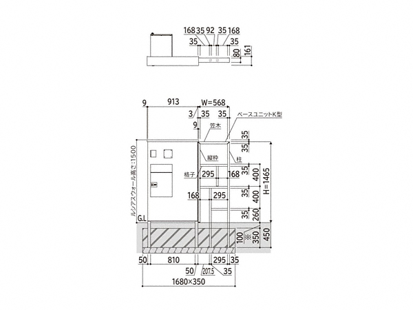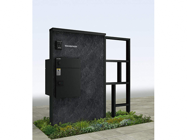 ルシアス ウォール RJ01型 プリュード ウォール フレームユニット 組み合わせ例2はルシアスウォール単体+ウォールフレームユニットの機能門柱です。"シンプルな壁"を表現したルシアスウォールと空間を生むウォールフレームユニットの組み合わせパターンは様々。