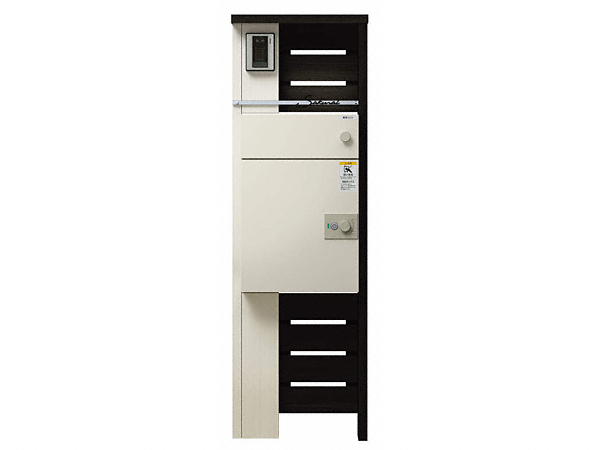 ルシアス ポストユニット WJ01型 横板格子 組み合わせ例2は横板格子を採用した本体と郵便ポスト・宅配ボックスが一体化したルシアス宅配ポスト3型をセットにしたポストユニットです。本体と宅配ポストはそれぞれアルミカラーや木調カラーから選択することができ、色の組み合わせ方も様々です。