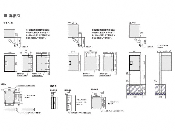 Nasta Box LIGHT ポールタイプ サイズ:Mはポールを地面に埋め込んで設置する前⼊前出(右勝⼿のみ)の宅配ボックスです。水の飛沫に対して有害な影響を受けないIPX4防水仕様の本体はシリンダー錠・プッシュボタン錠の2種類をご用意。また、宅配便はLサイズが100サイズ、Mサイズが80サイズまで入ります。
