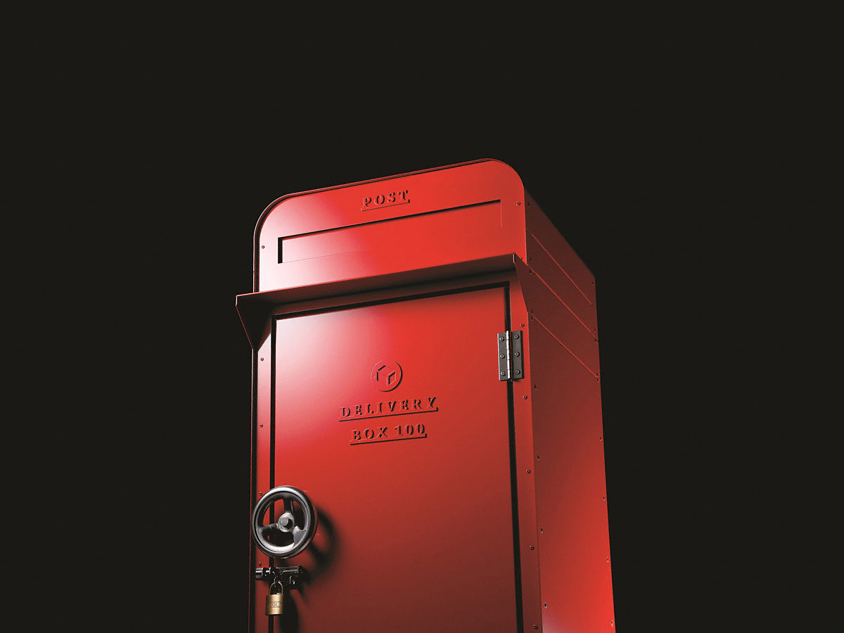 デポ 宅配BOX100+宅配BOX80はレトロ感溢れるスタンドタイプの宅配ボックスです。南京錠で施錠可能で投函・取り出しは正面から行います。BOX100はお米10kgなどの大型荷物、BOX80はCDや書籍などの小型荷物が入ります。本体にはサビや腐食に強いZAM®材(高耐食性溶融めっき鋼板の一種)が採用されています。