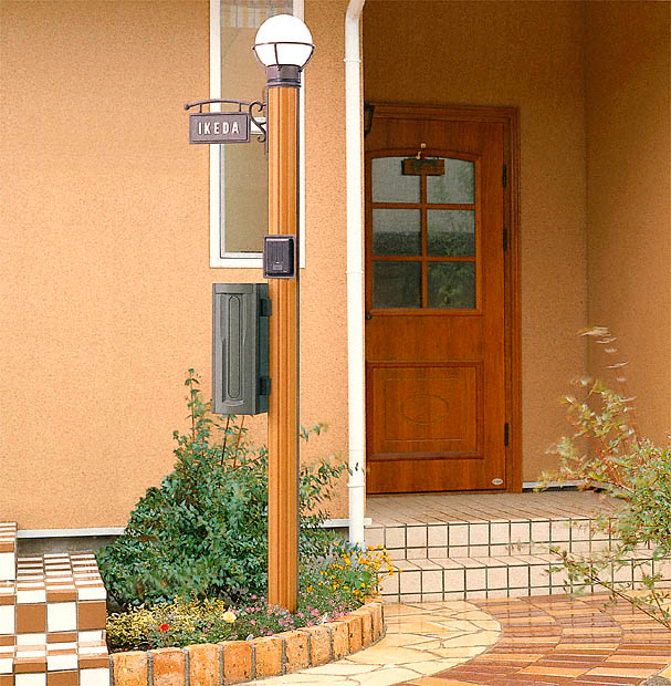 木粉入り樹脂を採用したファンクションポール。色褪せしにくく、腐りにくい、門まわりの機能を美しく集約。同シリーズのステイウッド門扉やアルミ鋳物門扉、フェンス等とトータルコーディネートで個性的な門まわりを演出できます。