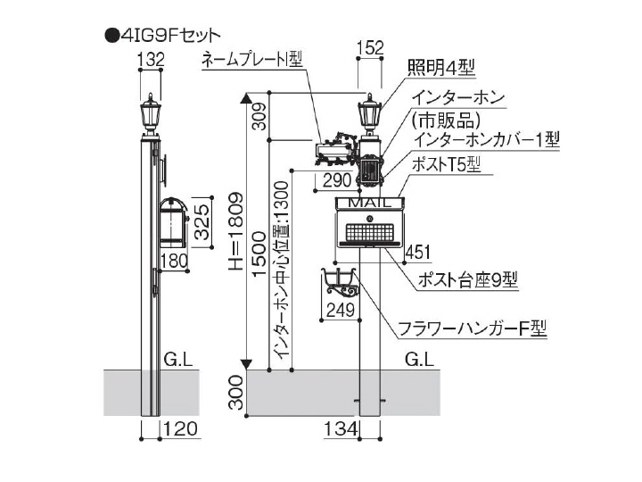 お求めやすい価格帯のポールタイプ。豊富な組み合わせと4色のカラーバリエーション、2機種の大容量ポストのほか、計12種類のポストやフラワーハンガー・照明と、さまざまな組合せが可能です。