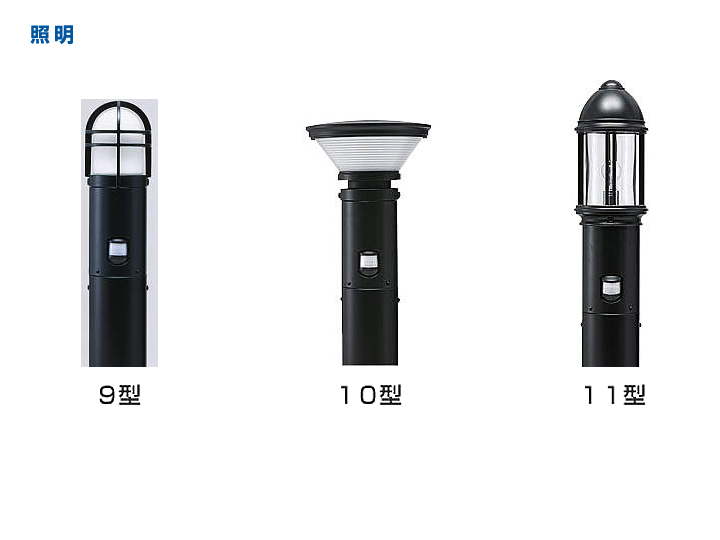 お求めやすい価格帯のポールタイプ。防犯性をプラスした7型は、センサー付き照明を標準装備。豊富なオプションで様々な組合せが可能です。