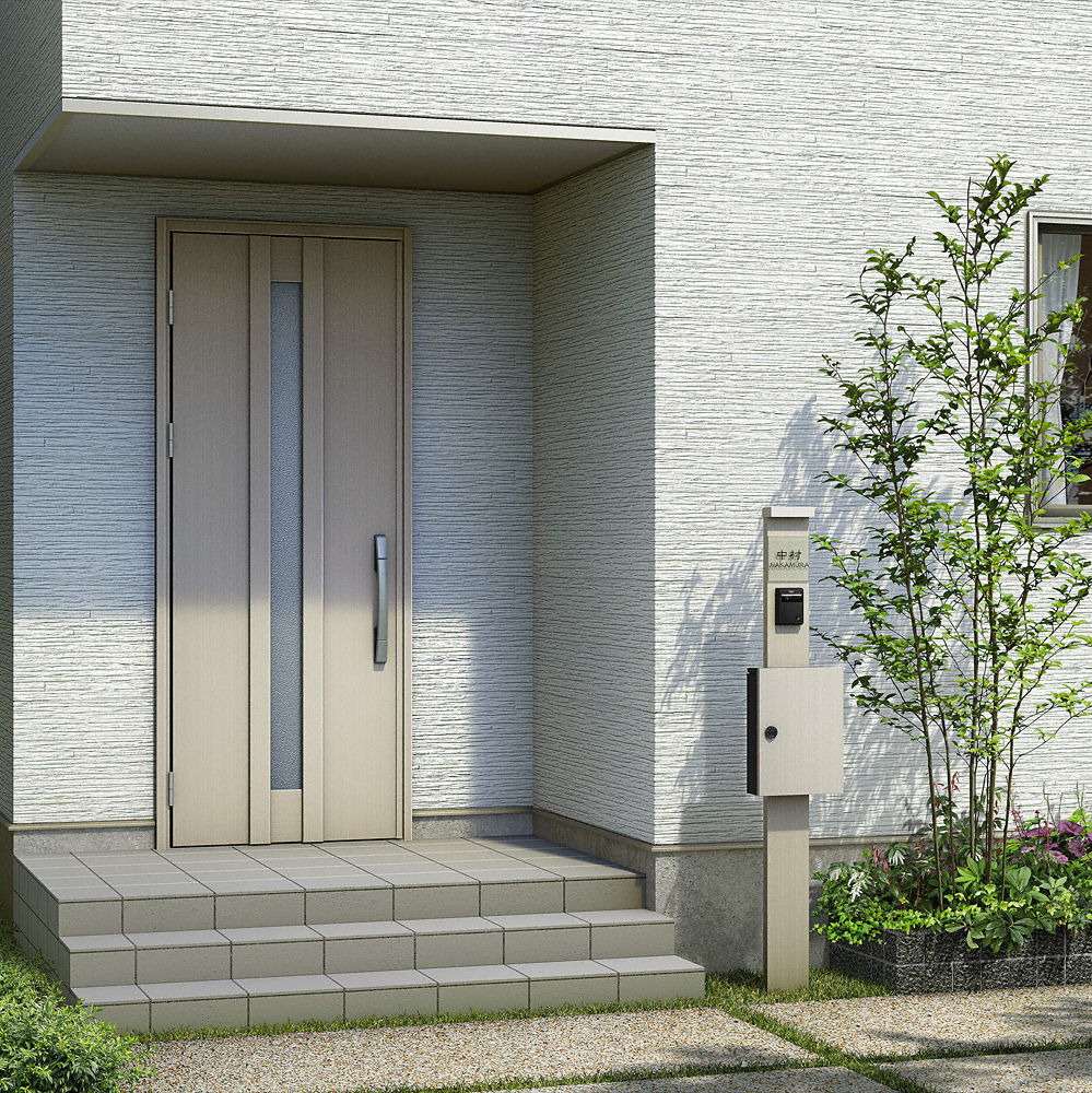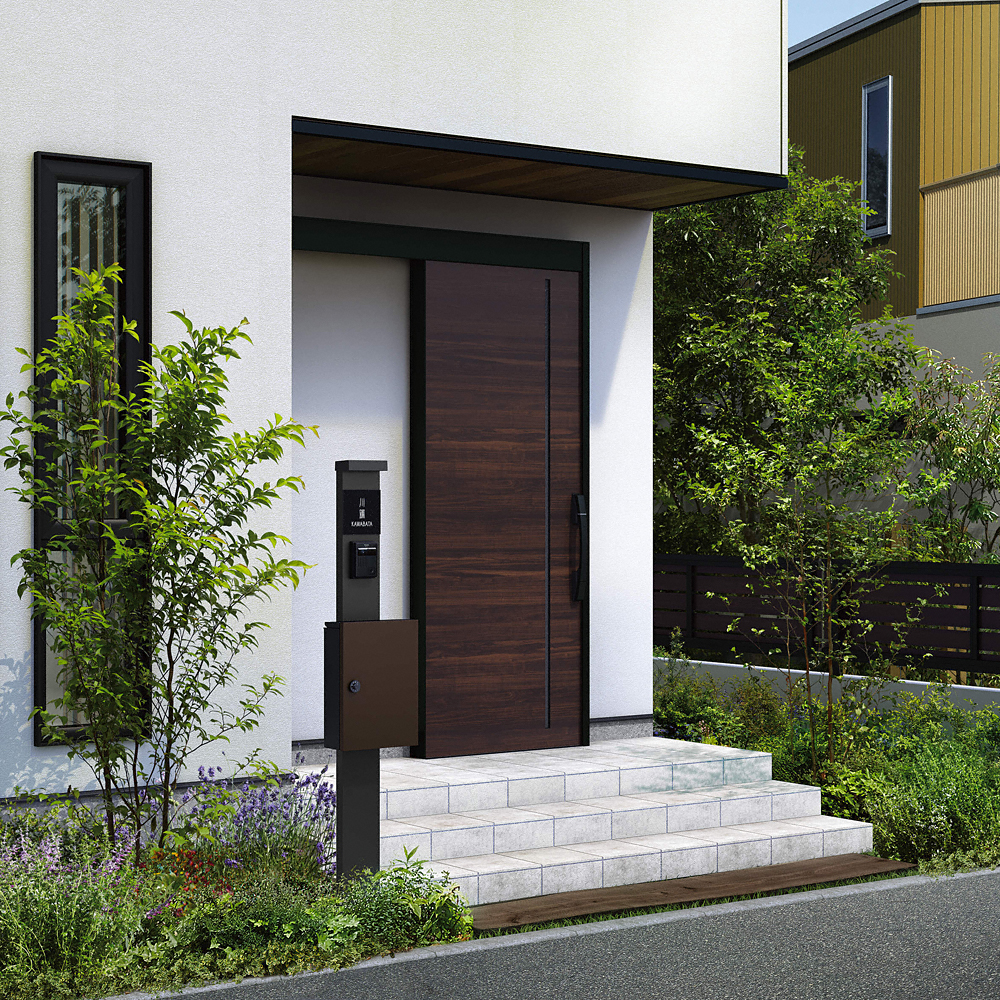 シンプルで住宅外観に馴染みやすいデザインの機能門柱「シンプレオ ポストユニット 1型」が、最もお求めやすい価格で登場しました。LED照明が門柱本体と一体化しているので、統一感があります。色はカームブラックなので、玄関が落ち着いた印象になります。ポストは4種類、本体色は2種類からお選びいただけます。