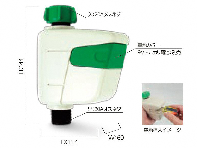 立水栓用の自動散水コントローラーです。 付属品:蛇口アダプター 20A 樹脂ブラッシング20A×13A クイックメネジアダプター20A 簡易保護カバー