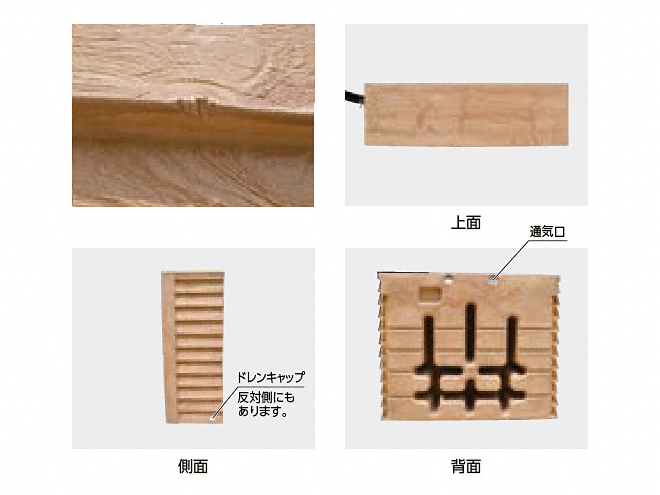 木で囲ってあるような温かみのあるデザインです。樹脂製のため、木製特有のささくれが発生しません。