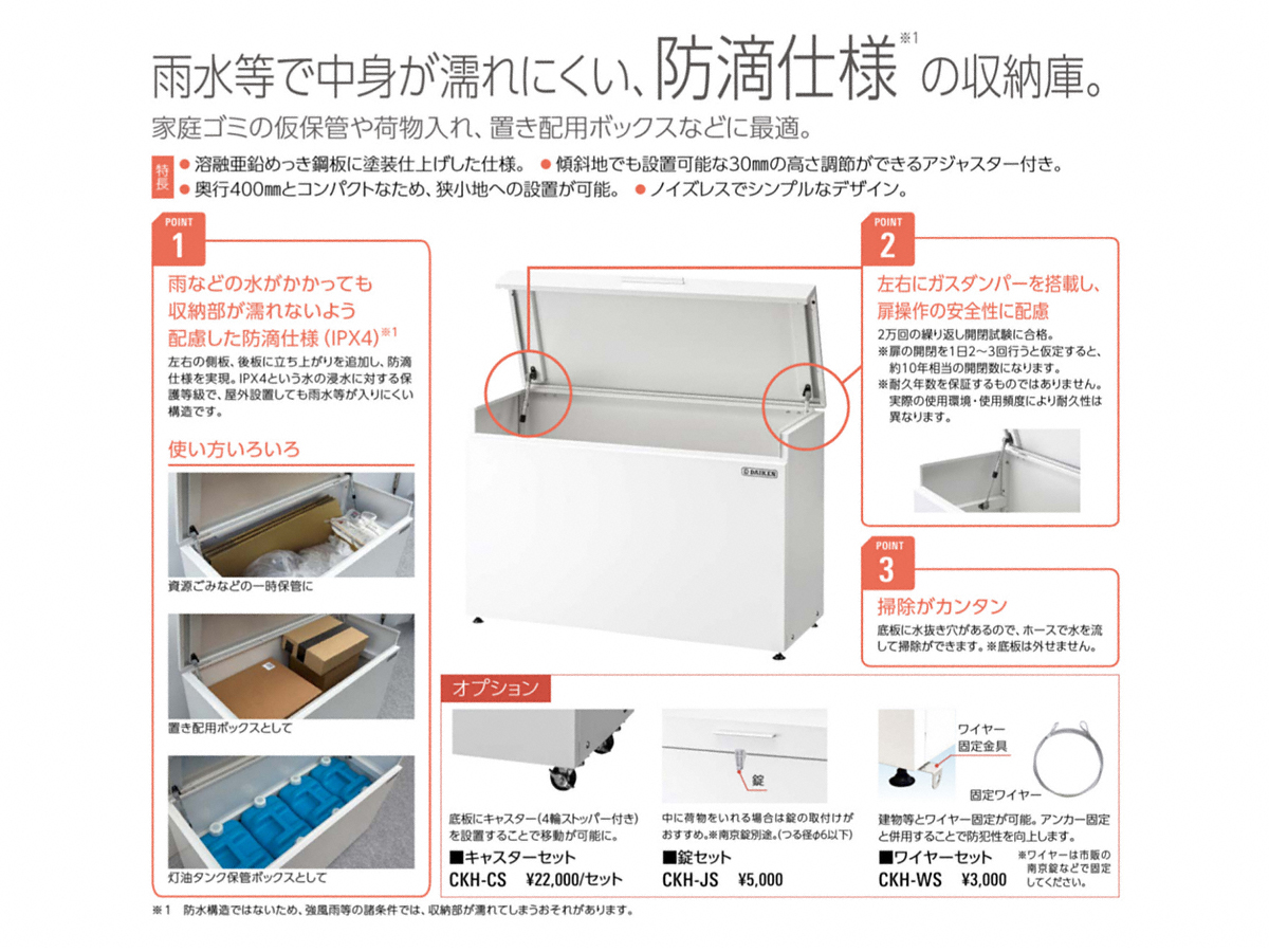 戸建て向けのゴミ収集庫が新登場です。コンパクトなサイズ、どんなお住まいにもあうモダンなデザインでが特徴です。家庭ごみの仮置き場としてだけでなく、荷物の保管、小物入れにも活用いただけます。