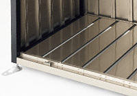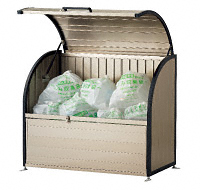 狭い場所にもぴったり納まる。景観にやさしい印象のアールデザイン。ガススプリング採用で軽い上ぶたでごみ袋の噛み込みを防ぐ専用カバー付