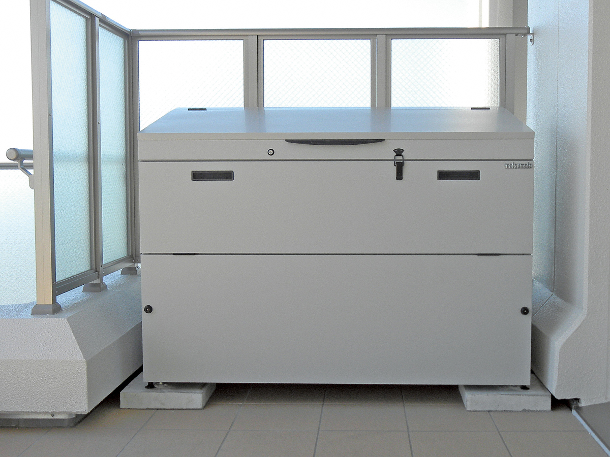 あたらしいメーカーあたらしいデザインマツモト物置の考え抜かれた物置です。通常の物置とはことなり、上部が大きく口を開くタイプ。上から物を入れられるので通路などの狭い場所にも最適。上下調整可能な40mmのアジャスターで水平調整も楽々。本商品の品番は「HOB-800H」です。