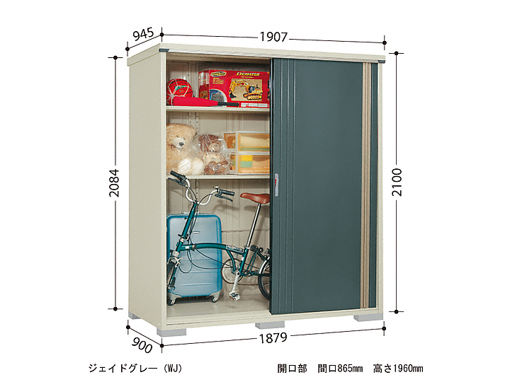 同じ接地面でも高さが違うと収納量に格段の違いがあります。背の高い物置で、土地を有効活用でき、より経済的です。たて置きタイプで、長い枝切りバサミなども収納可能。