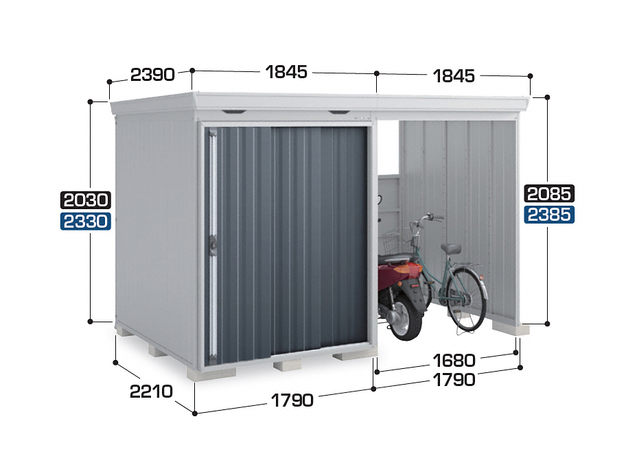 バイクや自転車も収納可能な開放スペースが特徴で、収納力も十分にある為、使い方自由自在の物置です。この機会に是非とも検討してみてはいかがでしょうか。