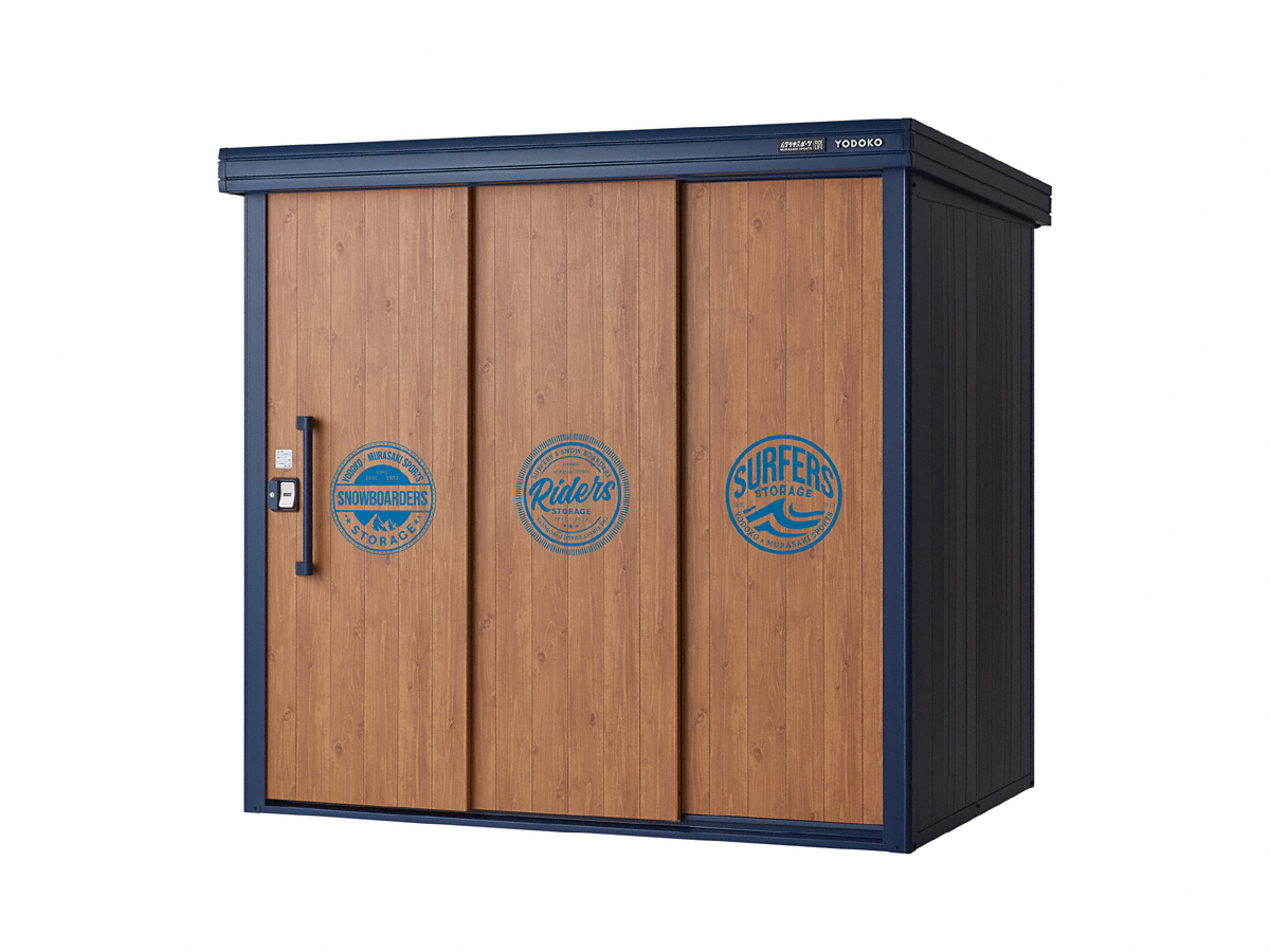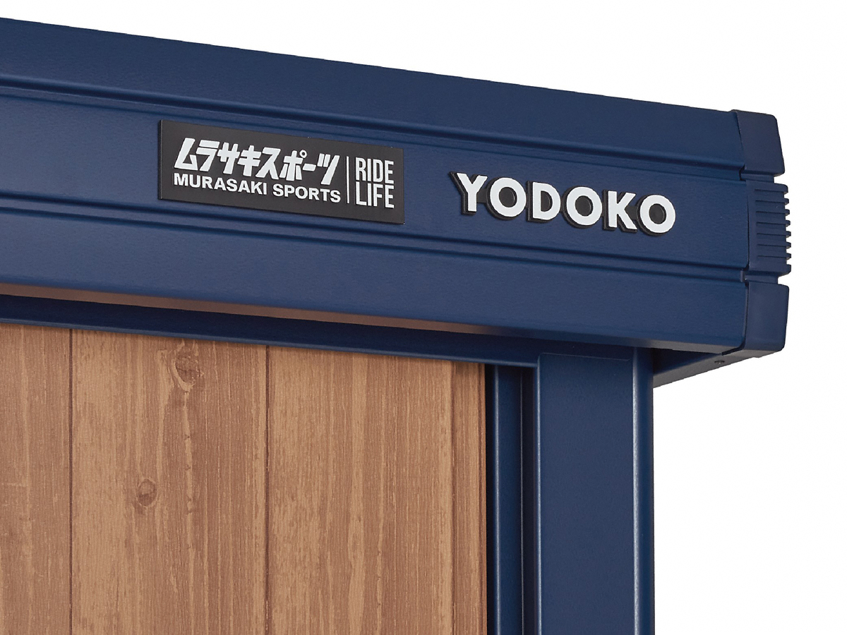 ヨド物置エルモ KOTO OKI by ムラサキスポーツ 豪雪型 2213×1512×2120は”自然と遊ぶ人々”のためにムラサキスポーツとヨドコウがタッグを組んで開発した物置です。ガルバリウム鋼板製物置のエルモをベースとしており、本体カラーは海を想起させるブルー×森を想起させるナチュラルウッドとなっています。オプションの小窓やハンガーパイプをつけることで活用の幅が広がります。