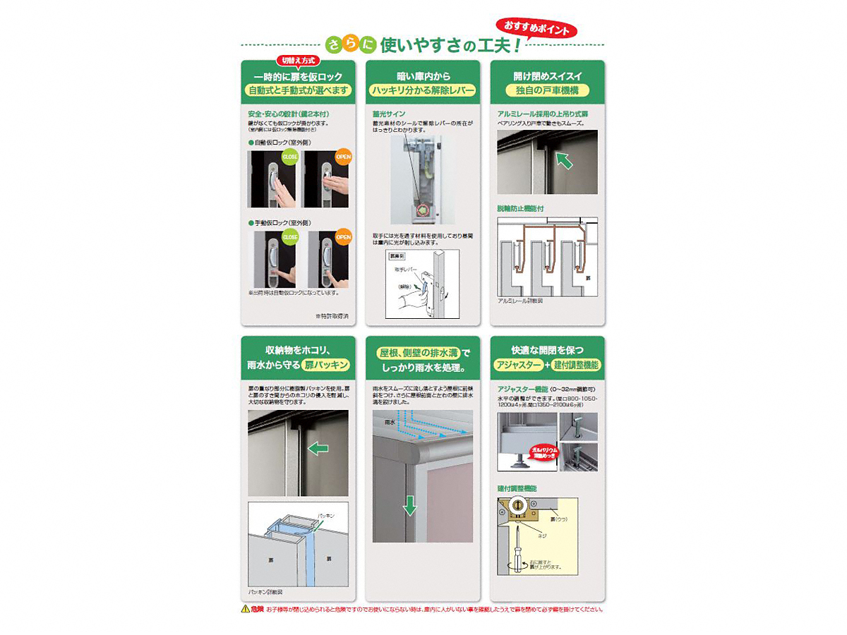 車のタイヤ、灯油用ポリ容器、バ-ベキュ-セット等収納場所ができ、助かりました。