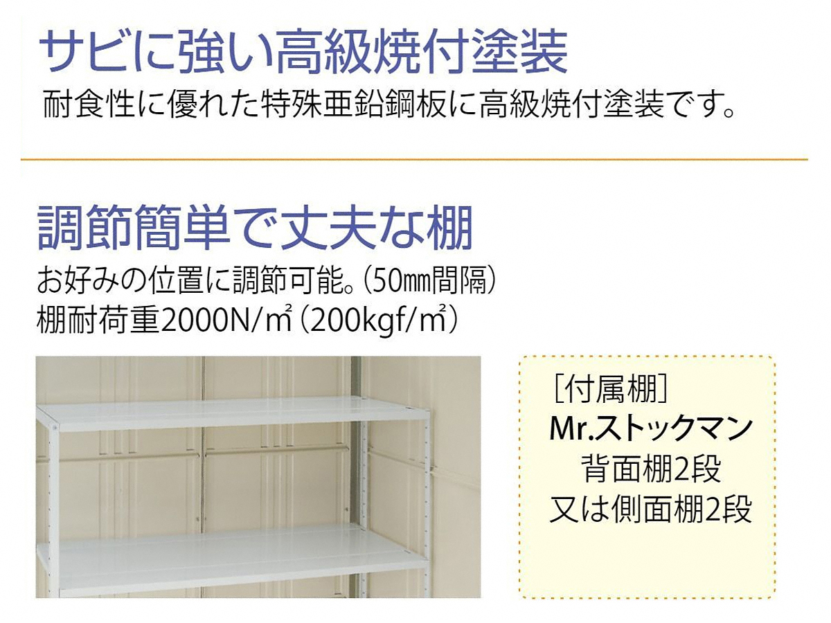 連動吊り戸で軽く静かに扉を開閉できるMr.ストックマンダンディ。レールはアルミで滑らかさもアップ!標準装備の雨水を逃がす樋は、隣家に雨水が流れ出すのを軽減してくれます。扉の左右開閉は、組み立て時に選択することができます。積雪100cmまで対応できる多雪型です。