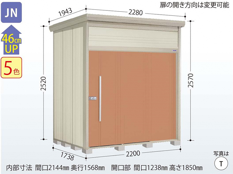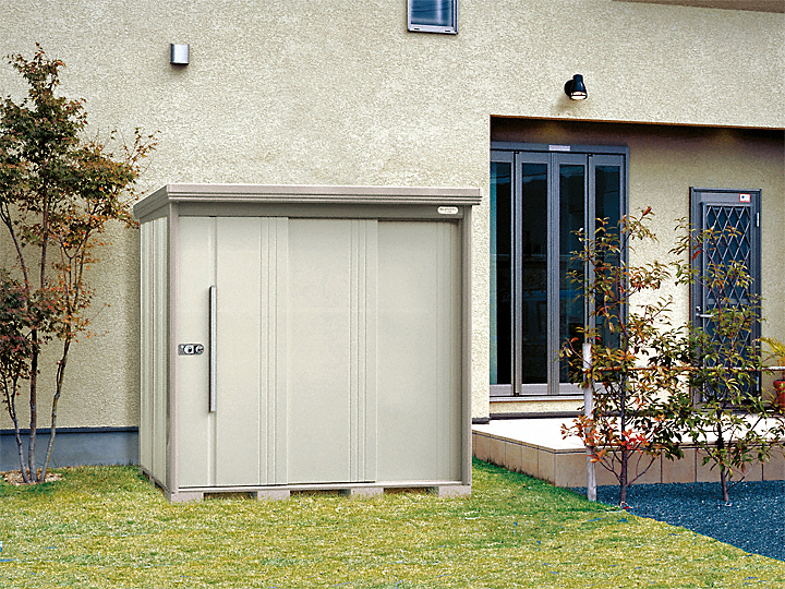 Mr.トールマンダンディは高さが2,570mmで長尺ものの収納力がアップ。扉は連動吊り戸で軽く静かに開閉でき、レールはアルミなので滑らかさもアップ!標準装備の雨水を逃がす樋は、隣家などに雨水が流れ出すのを軽減してくれます。扉の右引き左引きは、組み立てる時に選択できます。積雪60cmまで対応可能な一般型です。