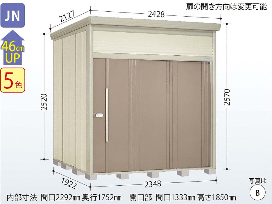 Mr.トールマンダンディは高さが2,570mmで長尺ものの収納力がアップ。扉は連動吊り戸で軽く静かに開閉でき、レールはアルミなので滑らかさもアップ!標準装備の雨水を逃がす樋は、隣家などに雨水が流れ出すのを軽減してくれます。扉の右引き左引きは、組み立てる時に選択できます。積雪対応は100cmまでで、寒い時期に発生する屋根の結露も軽減します。