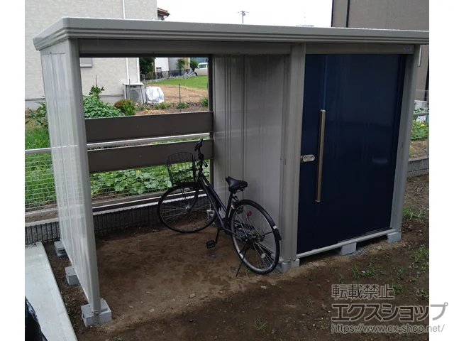 物置に駐輪スペースをプラスしたMr.ストックマン プラスアルファ。設置時に物置部分と解放部分は左右入れ替え可能で、扉は連動吊り戸なので軽く静かに開閉できます。駐輪スペースには車止め棒付きで防犯・雨除けの多機能物置です。積雪60cmまで対応可能な一般型です。