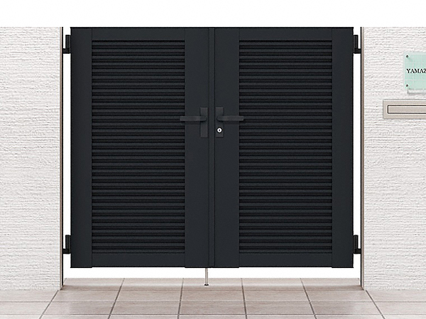 片開きは扉1枚のみで開閉するのが特徴です。スペースをとらないため、開口部が狭い勝手口や通用門などに設置することができます。また、比較的安価で設置可能であり、お財布にも優しいです。門扉ABYM1型は横に溝が入っている完全目隠しタイプの門扉です。