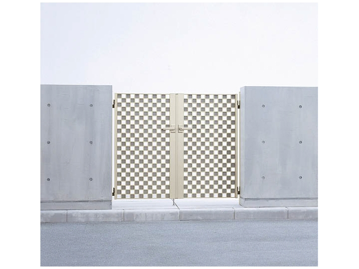 多彩なデザインや素材で、モダン住宅の外観アクセントになるシンプルモダン門扉シリーズ。5型【イチマツ】は、凹凸が光を反射して豊かな表情を見せる個性的な一品です。