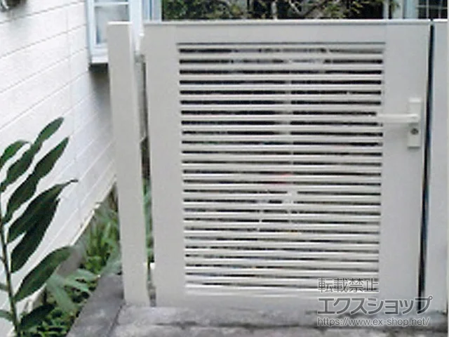 片開きは扉1枚のみで開閉するのが特徴です。スペースをとらないため、開口部が狭い勝手口や通用門などに設置することができます。また、比較的安価で設置可能であり、お財布にも優しいです。門扉ABYR1型は約15mmのスリットがある横格子の門扉です。