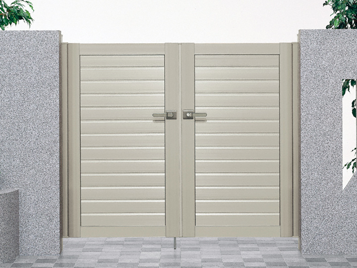 洗練されたスマートなフォルムの形材門扉、セレビューシリーズ!こちら7型は目隠しタイプ。カラーは4色からお好きなお色をチョイス!建物の雰囲気に合わせてお選び頂けます。
