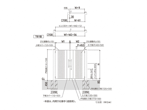 エクスティアラ 門扉 TB1型 たて格子 片開き 木調色