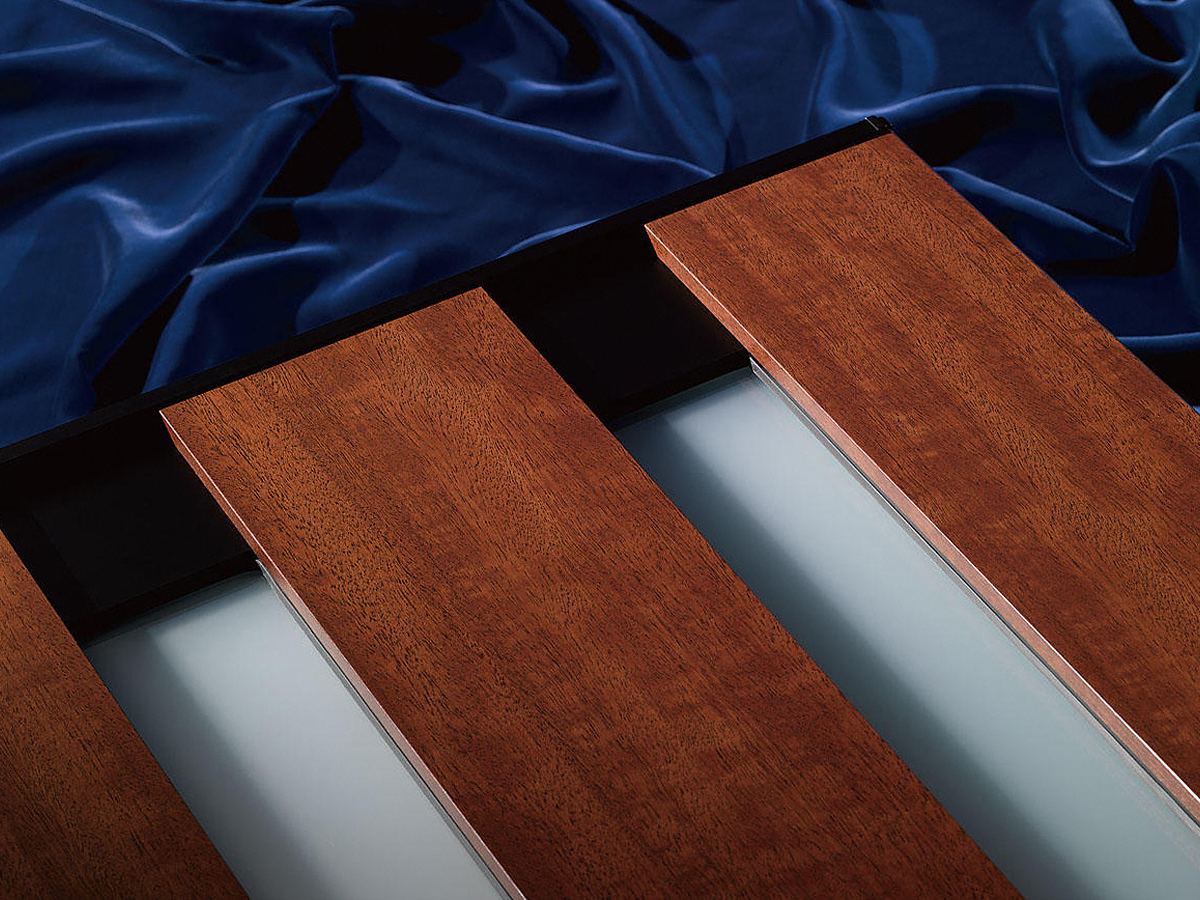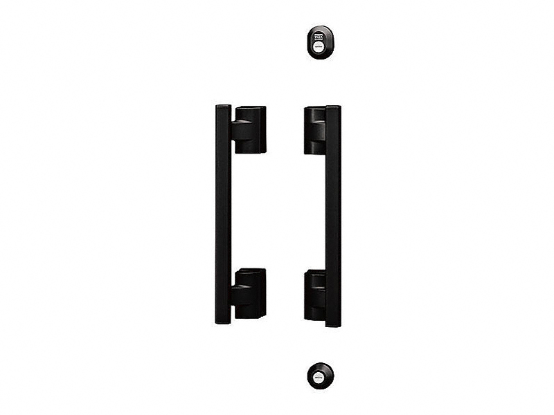 プレミエス門扉 M-TB型 親子開きはガラススリット×鋳物格子スタイルの門扉です。ヒンジや調整金具は防犯性がアップしており、施工性や操作性も備わっています。本体色はアルミ色のマイルドブラック+木調色のポートマホガニーのシックな色合い。