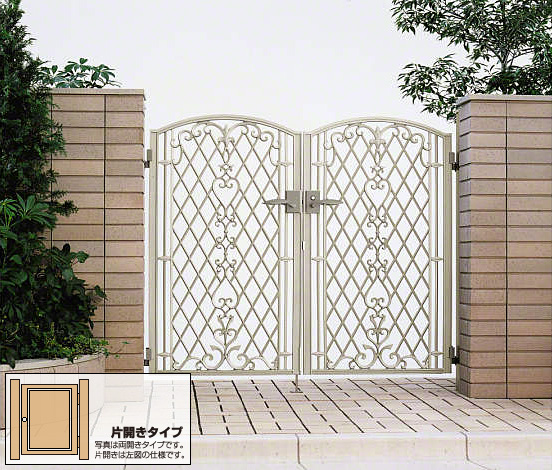 周囲の住宅や環境とのバランスを重視して作られた、まわりに溶け込み調和するデザインのYKKAPアーラス門扉シリーズです。適度に風が通り抜ける、緑をイメージした門扉の模様がとても美しく、来客を歓迎しているようです。エレガントな装飾が落ち着いた雰囲気を醸し出し、街並みとエクステリアをマッチさせています。