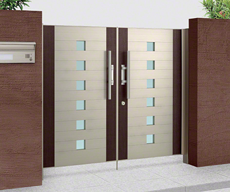 ポリカ窓付きをアクセントにしたフラット面タイプどんなデザイン。子供も開け閉めしやすい長い取っ手を採用しています。