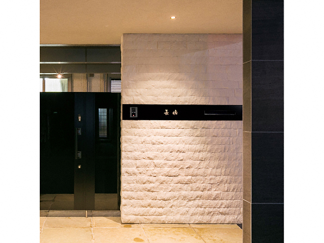 文字が光り、暗い夜道でも暖かい雰囲気をお家に醸し出してくれます。半ツヤ黒色まだら模様を用いている為落ち着いた高級感があります。