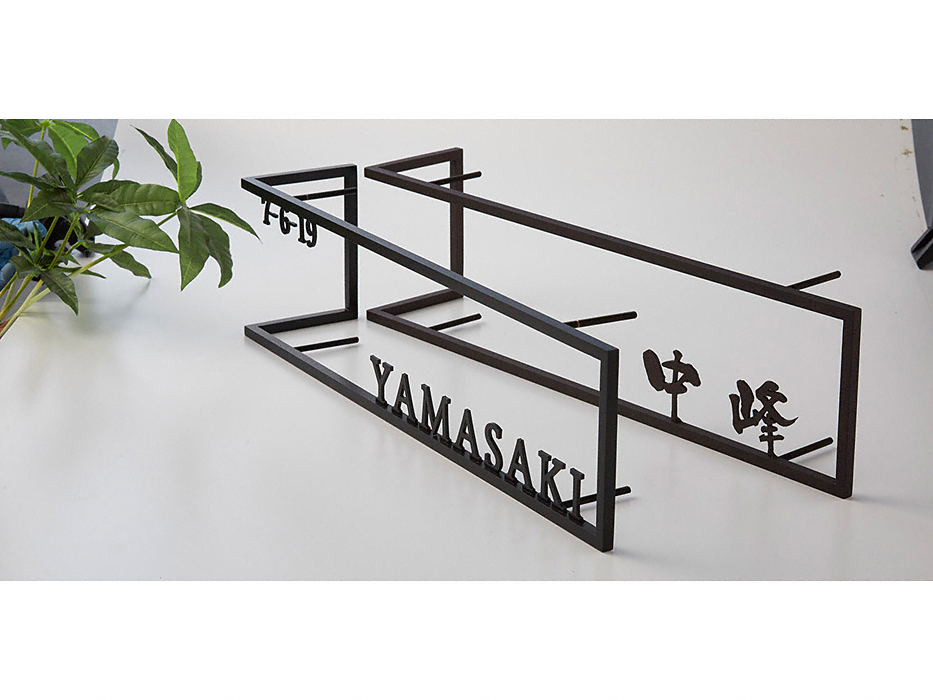 職人の手作業によって丁寧に仕上げられた真鍮製のアクセントフレームシリーズ。アプローチを飾る立体的なフォルムが印象的です。立体感のあるサンド風の黒塗装が施されるなど、見た目にこだわった表札となっています。個性を表現したい方におすすめの表札です。