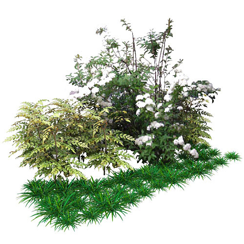 とにかくアキシラリスだけでも楽しい。ポイントはオオデマリで流れ落ちるような花をどこに植えるかが腕の見せ所。 セットに含まれる品種:オオデマリ、イワナンテン・アキシラリス、タマリュウ